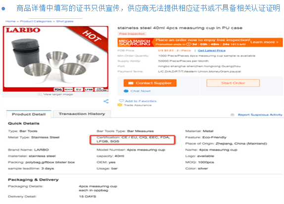 指供应商在产品详情及旺铺填写的涉及虚假乱造的信息,包含但不限于虚假产品证书、虚假专利、虚假企业管理体系证书、品牌假货、不符合行业规范等。